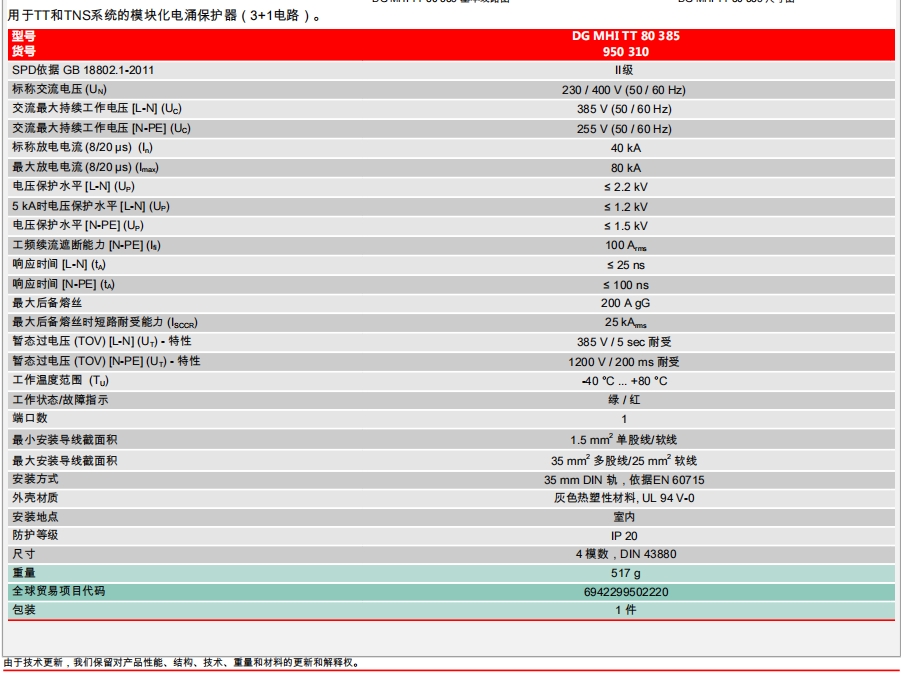 二级电源防雷器DG MHI 系列