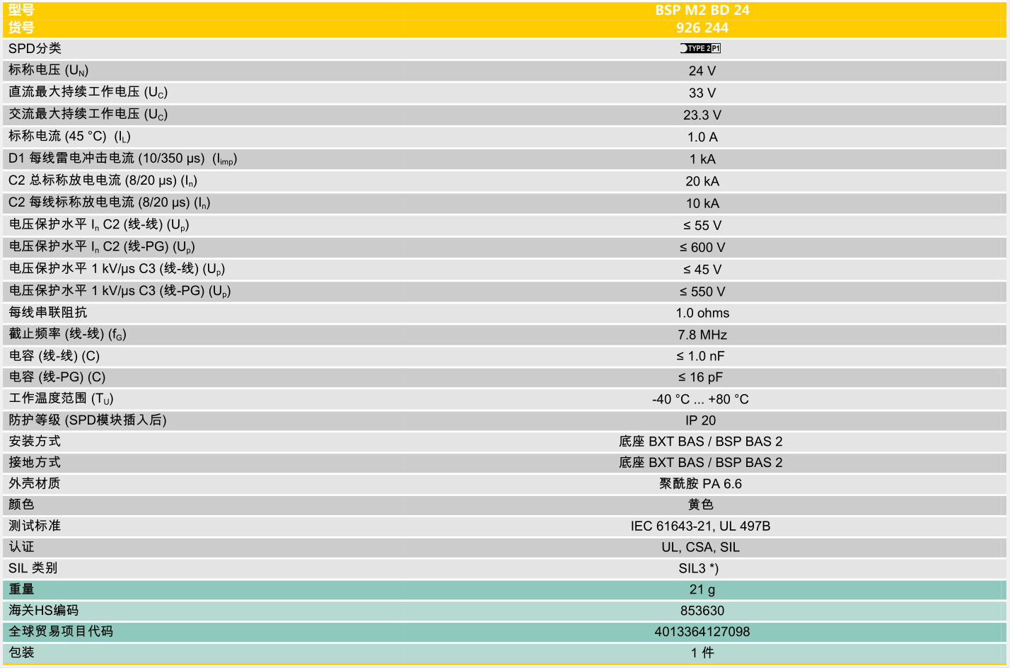 二线信号防雷器BSP M2 BD 24