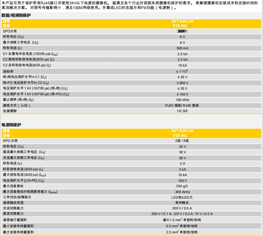 电源网络二合一防雷器BVT RJ45 24 .pdf