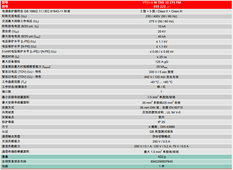 Ⅱ+Ⅲ级电源防雷器VT2+3 M